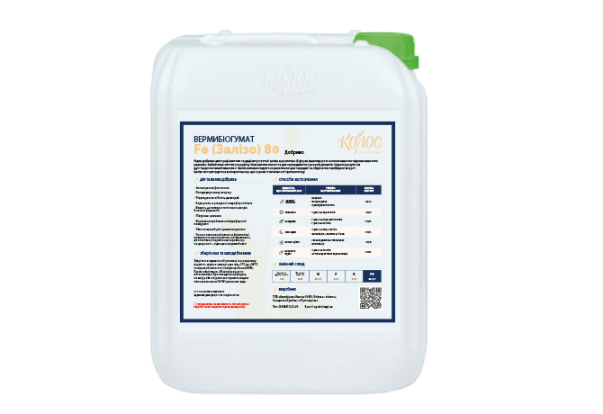 ВЕРМИБІОГУМАТ ЗАЛІЗО - рідке добриво для профілактики та дефіциту нестачі заліза в рослинах. Відіграє важливу роль в окислювально-відновлювальних реакціях. Забезпечує синтез хлорофілу. Має велике значення для проходження процесів дихання. Характеризується фунгидними властивостями. Залізо використовується рослинами для передачі та зберігання необхідної енергії. Залізо концентрується в хлоропластах, що сприяє інтенсивності фотосинтезу.